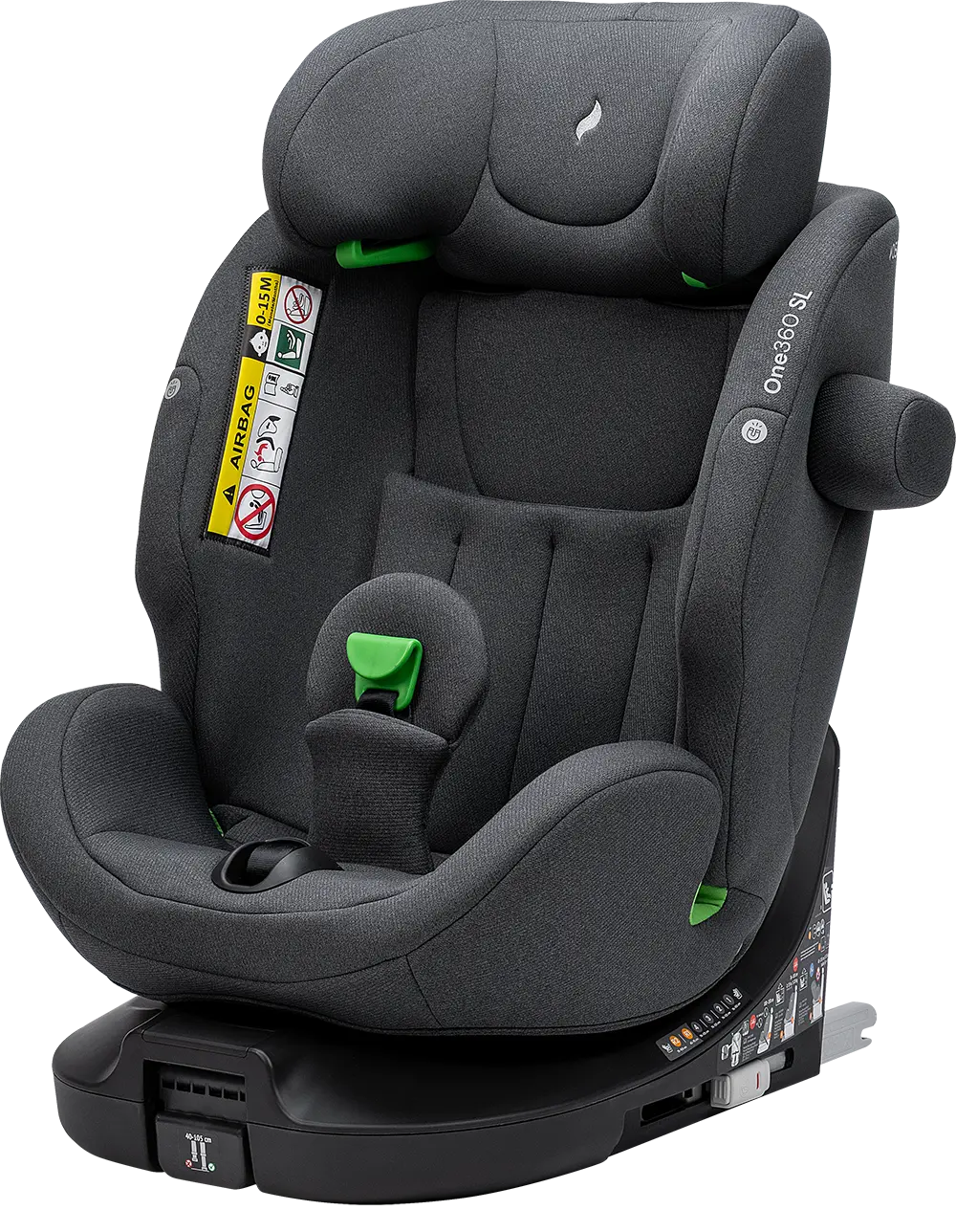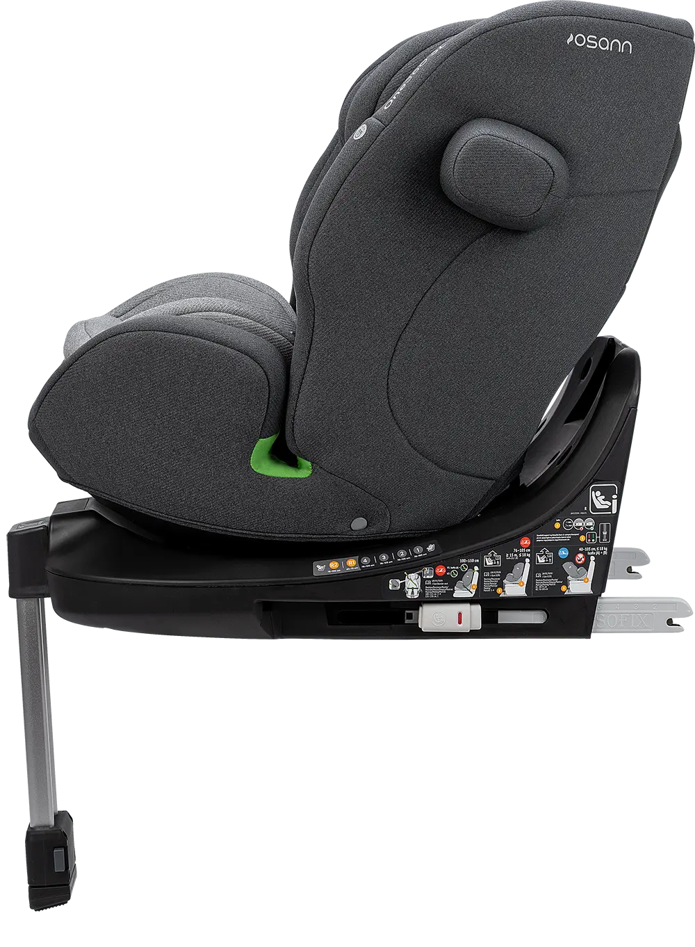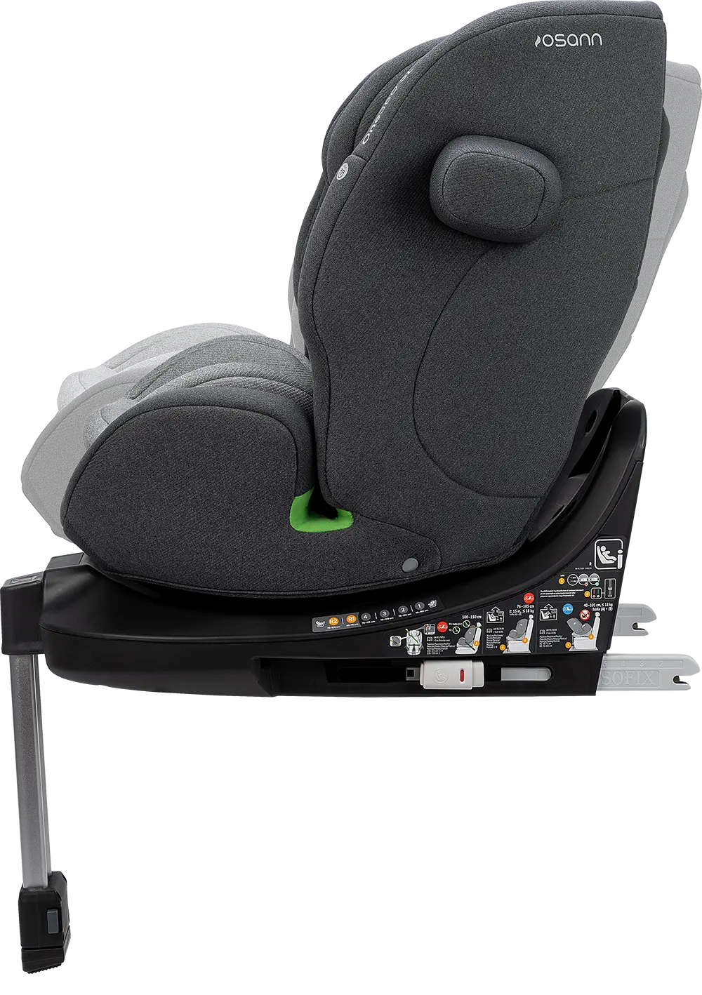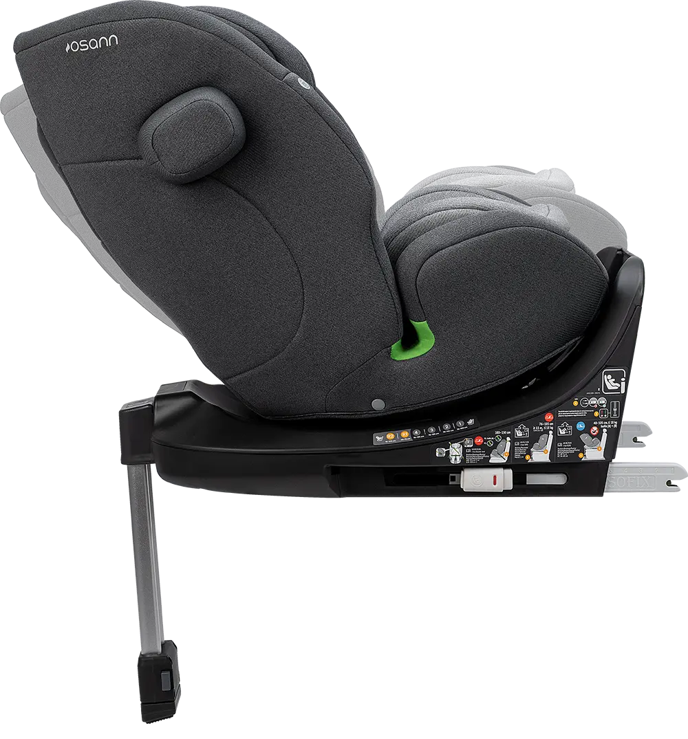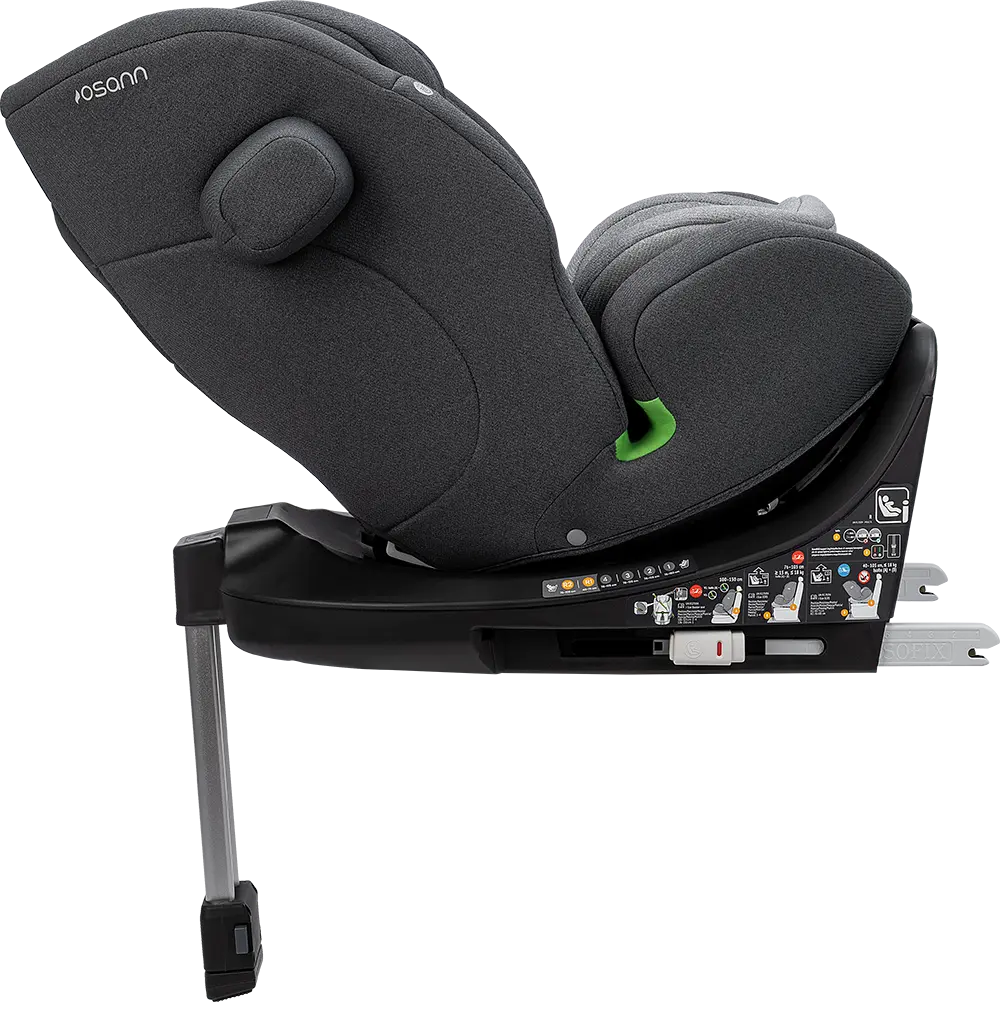 Der Sitz ist um 360 Grad drehbar, das ermöglicht dir einen einfachen und sanften Wechsel zwischen der rückwärtsgerichteten und vorwärtsgerichteten Sitzposition. Wenn du dein Kind hineinsetzten möchtest, kannst du den Sitz zur Tür hin drehen, was dir das Anschnallen enorm erleichtert. Anschließend drehst du den Sitz wieder in die gewünschte Fahrposition. Der Sitz ist in allen Sitzpositionen drehbar, ausgenommen vorwärtsgerichtet von 76 bis 100 cm.