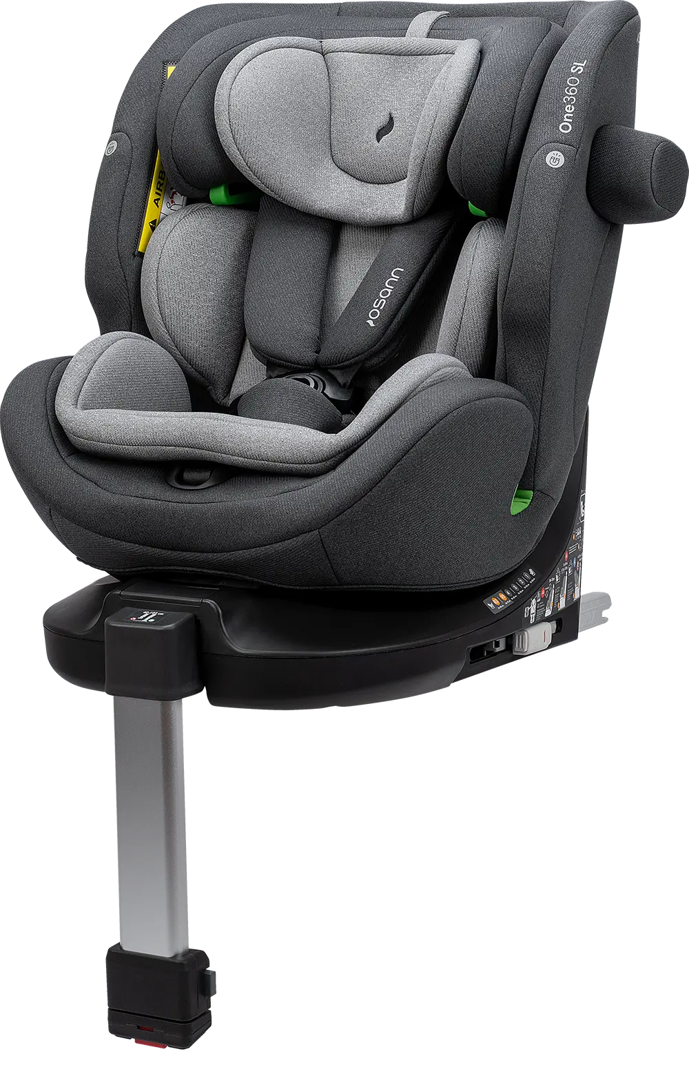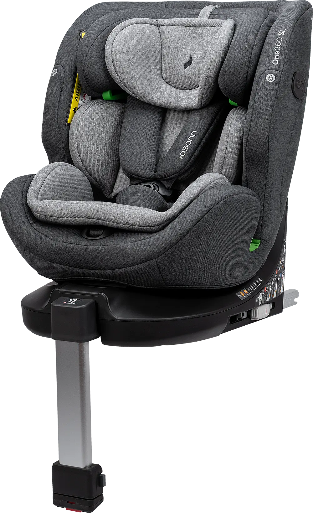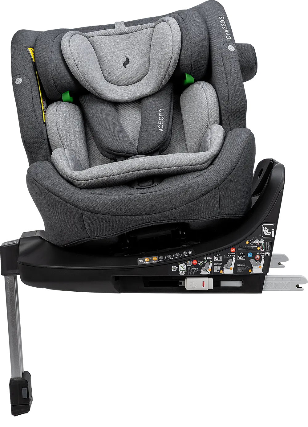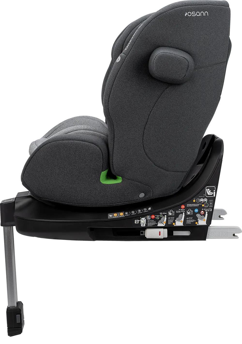 Der Sitz ist um 360 Grad drehbar, das ermöglicht dir einen einfachen und sanften Wechsel zwischen der rückwärtsgerichteten und vorwärtsgerichteten Sitzposition. Wenn du dein Kind hineinsetzten möchtest, kannst du den Sitz zur Tür hin drehen, was dir das Anschnallen enorm erleichtert. Anschließend drehst du den Sitz wieder in die gewünschte Fahrposition. Der Sitz ist in allen Sitzpositionen drehbar, ausgenommen vorwärtsgerichtet von 76 bis 100 cm.