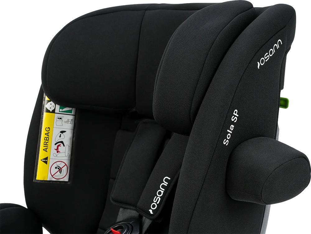 Sicherheit: Der Sola SP verfügt über spezielle Protektoren an der Kopfstütze und schützt somit Kopf und Nacken deines Kindes besonders gut. Dank der Positionierung des Seitenaufprallschutzes kann dein Kind trotzdem bequem aus dem Fenster schauen.