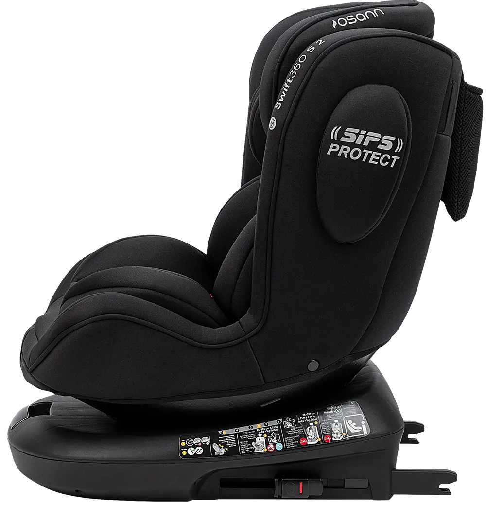 Der Swift360 S verfügt über integrierte Seitenaufprallschutz-Protektoren. Zusätzlich sind die Flanken weit nach vorne gezogen, sodass der Kopf und Nacken deines Kindes im Kindersitz bestens geschützt sind.